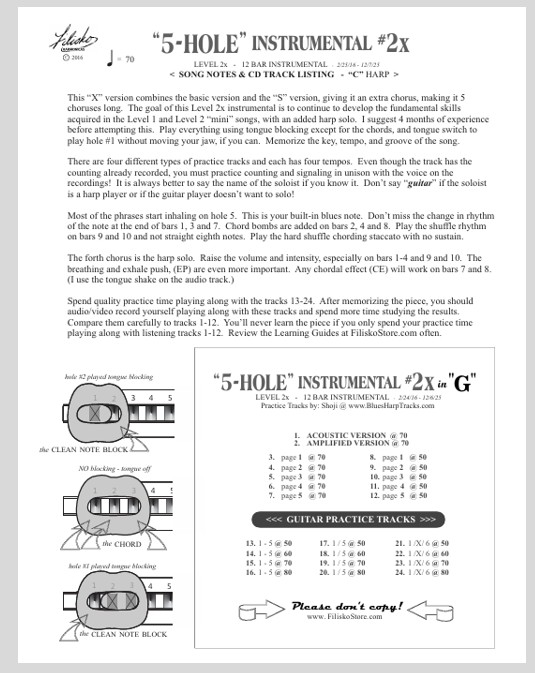 Remember, each CORE 5-Hole Instrumental is important because the actual 5-hole inhaling note on the harp is the most bluesy unbent note available. One must be confident at hitting it.