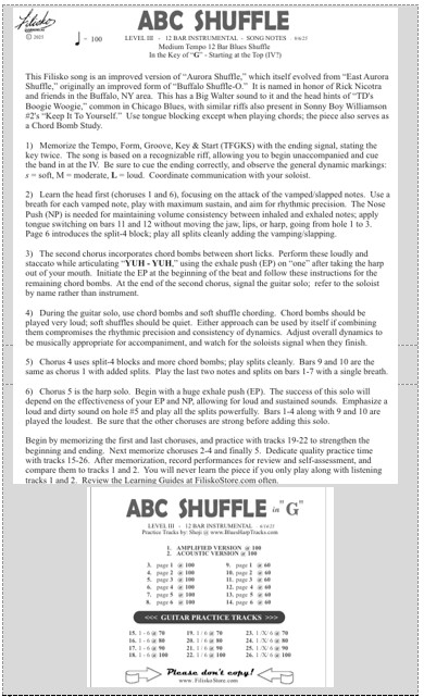 This Filisko song is an improved version of “Aurora Shuffle,” which itself evolved from “East Aurora Shuffle,” originally an improved form of “Buffalo Shuffle-O.” It is named in honor of Rick Nicotra and friends in the Buffalo, NY area. This has a Big Walter sound to it and the head hints of “TD's Boogie Woogie,” common in Chicago Blues, with similar riffs also present in Sonny Boy Williamson #2's “Keep It To Yourself.” Use tongue blocking except when playing chords; the piece also serves as a Chord Bomb Study.